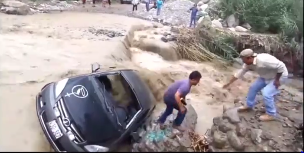 عرض موقع live leak المعني بنشر الفيديوهات الترفيهية مقطع فيديو لشاب انحدرت سيارته ووقعت في نهر متدفق سريع في دولة بيرو غرب أمريكا الجنوبية، ويحاول كسر زجاج السيارة لينجو بنفسه بعد أن اصطدمت سيارته بصخرة أسفل النهر.