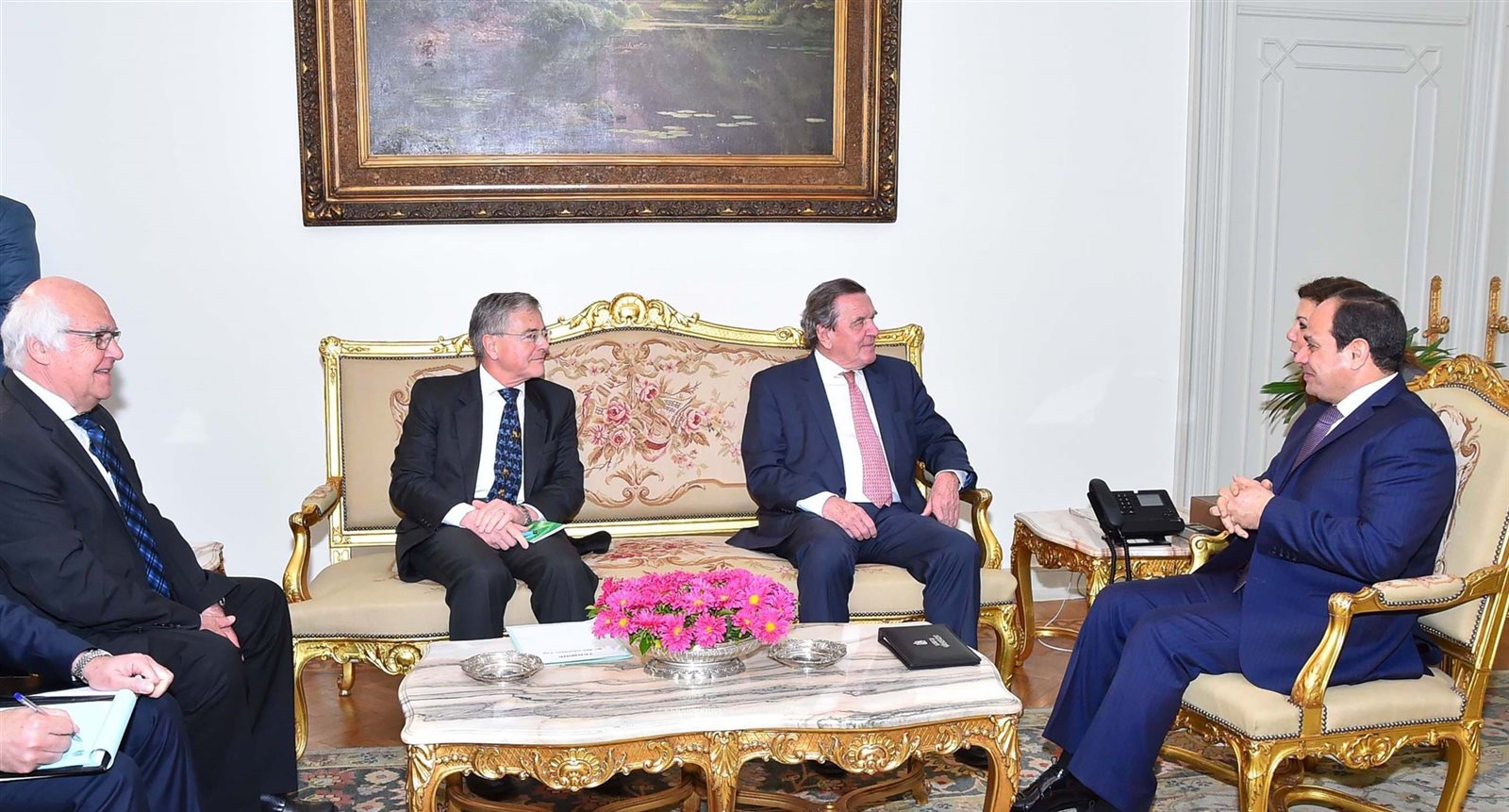 الرئيس السيسى يستقبل المستشار الألمانى السابق.. ويشيد بالعلاقات المصرية الألمانية