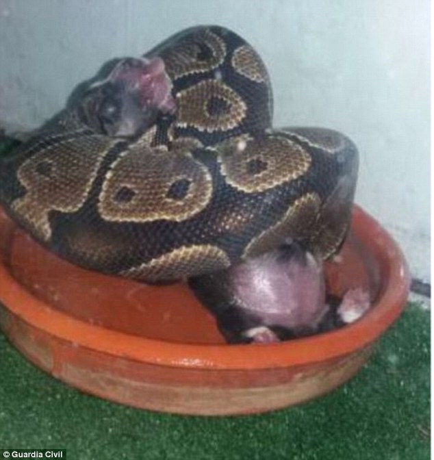 جاء ذلك بعدما تلقت منظمة الرفق بالحيوان الإسبانية بلاغًا بمجموعة من صور ضحايا الثعبان، تم نشرها على الإنترنت للتعرف على هوية المتسبب فى ذلك التصرف المشين، وقادتهم المعلومات إلى سيدة فى مدينة "لوجا" تربي ثعبان "بايثون" ضخم فى منزلها.