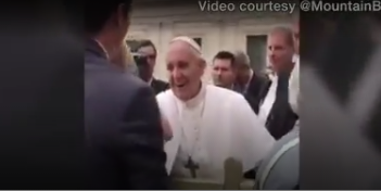 تعرض البابا فرانسيس بابا الكنيسة الكاثوليكية أسقف روما، لموقف محرج أثناء سيره في ساحة القديس بطرس تسبب في دخوله في نوبة من الضحك الهستيري وذلك وسط احتشاد المارة ووسائل الإعلام للحصول على مباركته والتقاط الصور معه.