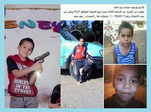 كان الطفل يوسف حمدى سيد 9 سنوات، قد تغيب منذ يوم الجمعة الماضي، مما دفع أهله إلى تنظيم وقفة احتجاجية وقطع الطريق للضغط على أجهزة الأمن لتكثيف جهودها لاستعادة الطفل.