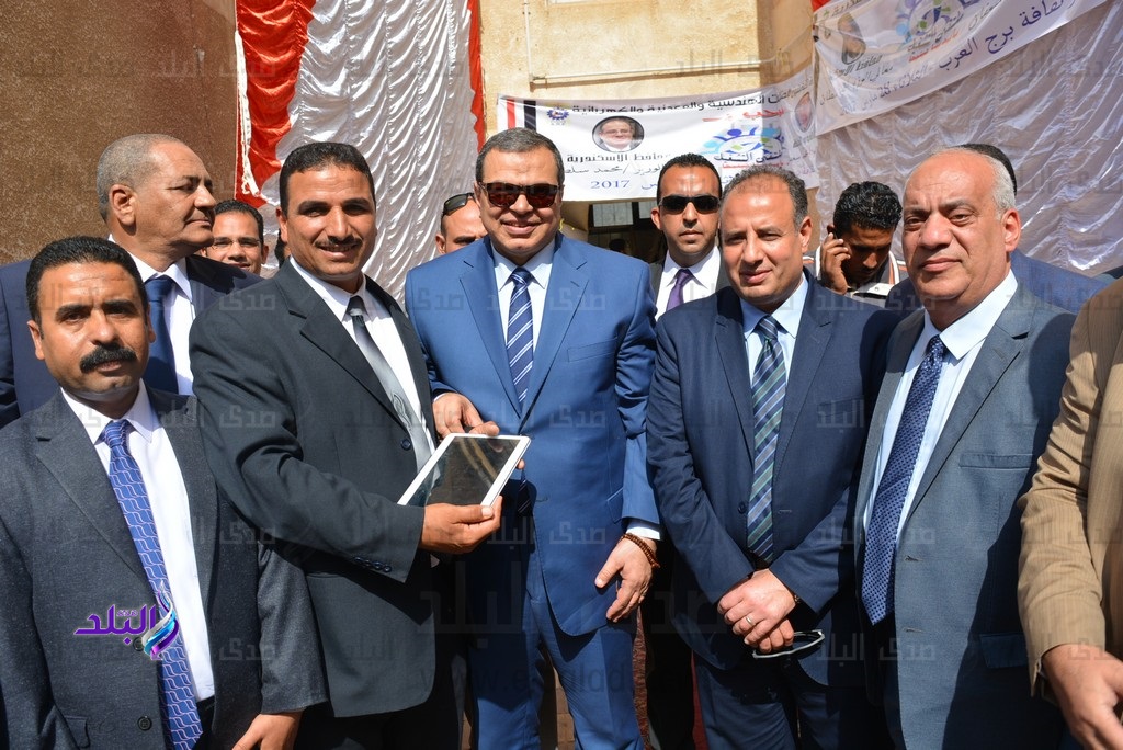 وقام الوزير بتسليم "تابلت" لأحد مفتشي العمل لبدء العمل بالبرنامج، كما أبدى المحافظ اهتماما بالغا بملتقى التوظيف وفكرة مشروع الحوسبة.