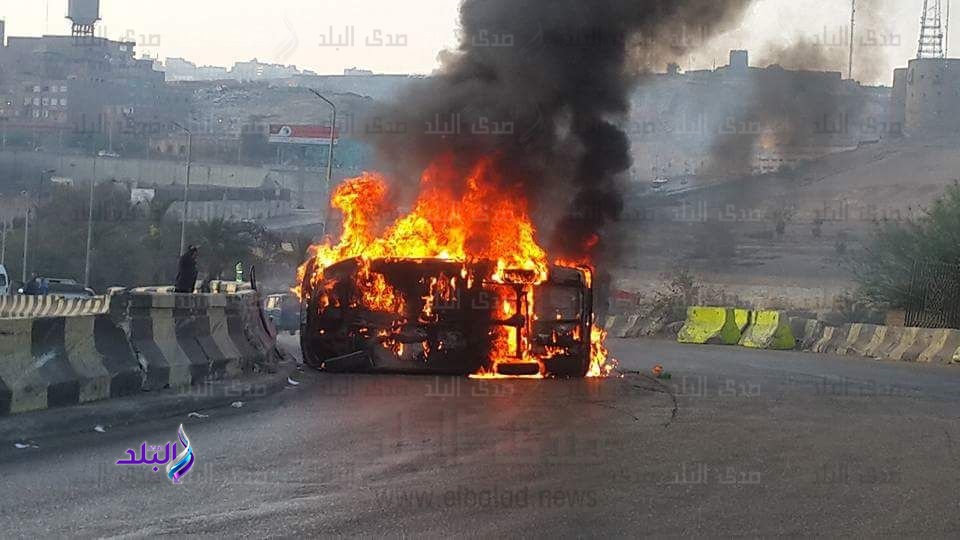اشتعال سيارة أمام حديقة الأزهر عقب انقلابها.. صور