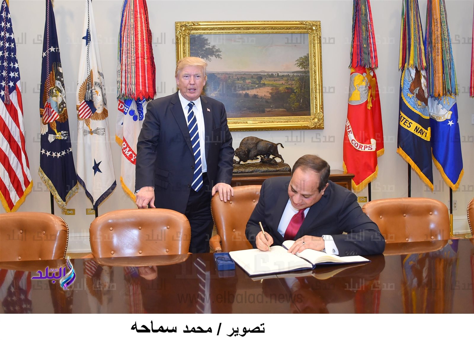 الرئيس السيسي يوقع في دفتر الزيارات بالبيت الأبيض .. صور