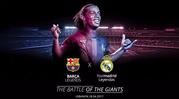 وستقام مباراة أساطير الريال والبارسا في 28 أبريل الجاري بمشاركة النجم البرازيلى السابق رونالدينيو الذى سيرتدى قميص " برشلونة " .