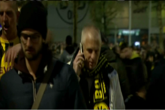 غادرت جماهير فريق نادى بروسيا دورتموند ملعب ناديها، وذلك عقب تأجيل لقاء فريقها مع نادى موناكو الفرنسى فى دورى الأبطال الأوروبى نتيجة لوقوع 3 تفجيرات بالقرب من حافلة النادى الألمانى خلال توجهها لملعب المباراة.