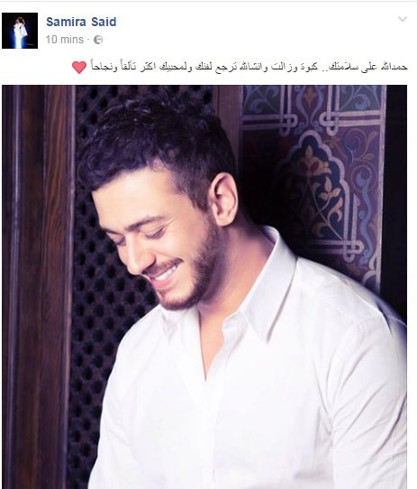حرصت الديفا سميرة سعيد على تهنئة المطرب المغربة سعد لمجرد عبر صفحتها الرسمية بموقع فيس بوك ، فنشرت صورة له عقب خروجه من محبسه وعلقت: "حمدالله على سلامتك.. كبوة وزالت، وإن شاء الله ترجع لفنك ولمحبيك أكثر تألقًا ونجاحًا".