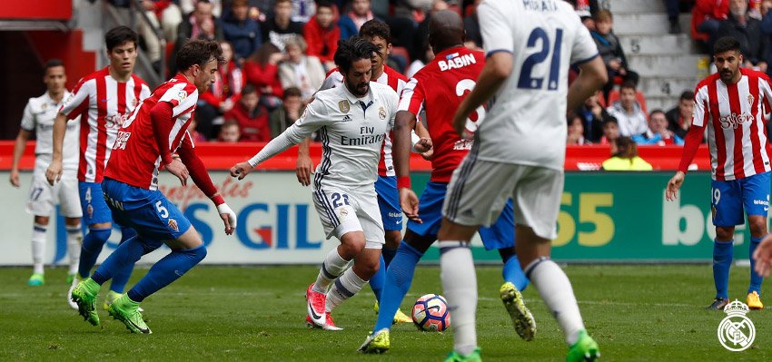 انتهى الشوط الأول من مباراة سبورتينج خيخون وريال مدريد المقامة حاليًا على أرضية استاد المولينون، في إطار منافسات الجولة الـ32 من مسابقة الدورى الإسبانى الممتاز لكرة القدم " الليجا"، بتعادل الفريقين بهدف لكل منهما.