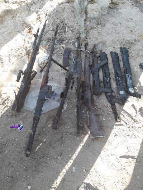 وتم ضبط ألغام أرضية مضاده للأفراد مدون عليها عبارات باللغة الفارسية، قنابل F1 يدوية، كميات كبيرة من القطع الحديدية صغيرة الحجم ورلمان البلى يستخدم فى تجهيز العبوات الناسفة، كميات كبيرة من بوادئ الانفجار معدة للاستخدام وتحت التجهيز، دوائر توصيل كهربائية ومعدات للتفجير عن بعد، كميات كبيرة تزن نصف طن من مادة نترات الصوديوم، كمية من مادة TATB شديدة الانفجار، 12 مفجرا حربيا يستخدم فى إعداد الأحزمة الناسفة.