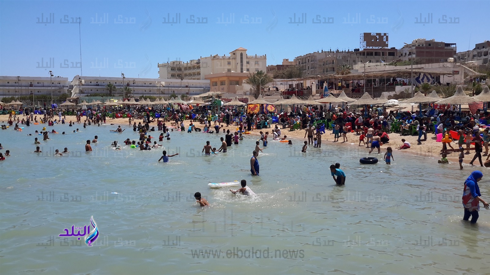 توافد الآلاف من المواطنين بجميع المحافظات المجاورة للبحر الأحمر إلى شواطئ مدينة الغردقة، صباح اليوم ، احتفالا بعيد شم النسيم.