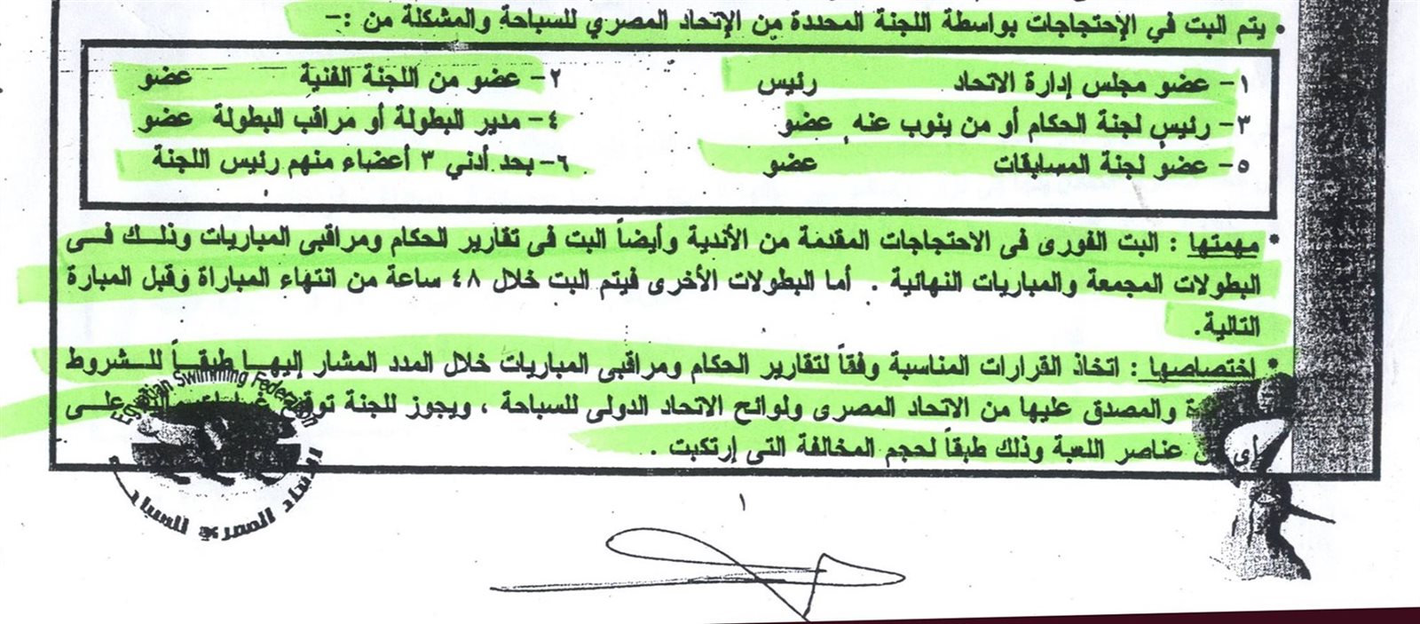 ويود الأهلي أيضًا التأكيد على أنه شارك في بطولة كأس مصر استنادًا إلى لائحة رسمية معتمدة أصدرها الاتحاد والتزمت بها كل الأندية وفي مقدمتها الأهلي، وحين انتهت مباريات الأدوار الأولى بتعادل ثلاث فرق في رصيد النقاط، هي: الأهلي والجزيرة والزمالك، فقد انتظر الأهلي تطبيق لائحة البطولة التي كانت ستمنح الأهلي المركز الثاني بعد الجزيرة، إلا أن الأهلي فوجئ باتحاد السباحة يمنح المركز الثاني للزمالك بالمخالفة لنفس لائحة الاتحاد، التي أقيمت على أساسها البطولة، وأرسل الأهلي احتجاجًا رسميًا، وأنتظر رد الاتحاد الذي كان من المفترض أن يرد قبل استكمال المباريات، إلا أن ذلك لم يحدث، وبقي الأهلي ينتظر الرد على احتجاجه فإذا به يفاجئ ببيان اتحاد السباحة الذي يتهم الأهلي بالانسحاب متجاهلا لوائحه التي صدرت قبل إقامة المسابقة، وتضمّنت بندًا صريحًا، جاء نصه: «تخضع البطولة لقواعد وقوانين الاتحاد الدولي للسباحة عدا ما يوجد به نص صريح في لائحة الاتحاد المصري».