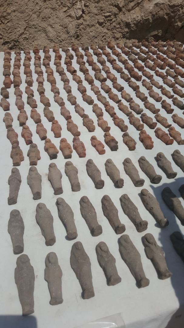 وقال الوزير إنه تم العثور على 6 توابيت ومومياوتين وعدد 1050 تمثالا "أوشابتى" بعضها من التراكوتا فى حالة جيدة جدا من الحفظ.