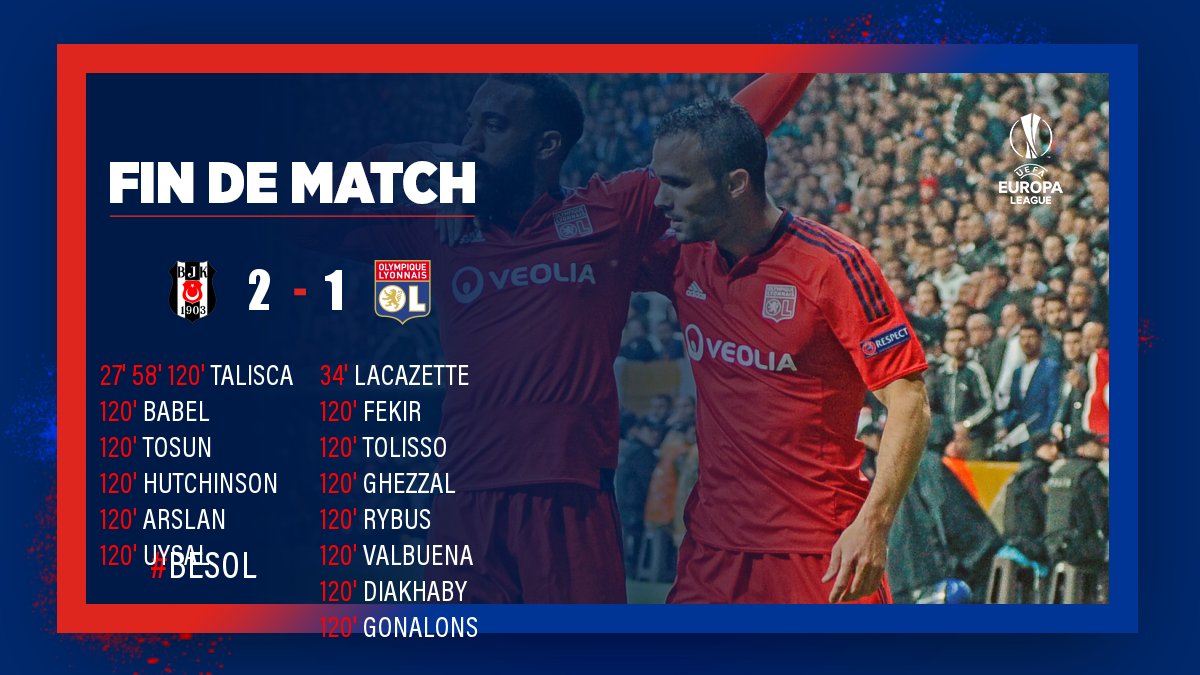 عبر أولمبيك ليون الفرنسى للدور نصف النهائى من مسابقة الدورى الأوروبى لكرة القدم بعدما تخطى عقبة مضيفه بشكتاش التركى بركلات الجزاء الترجيحية بنتيجة 7 / 6 فى المباراة التى أقيمت على ملعب فودافون أرينا فى اياب ربع نهائى "اليوروبا ليج".