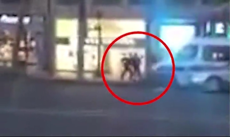 ويظهر في الفيديو، الذي التقطه رجل كان حاضرا بعين المكان، شخصان مسلحان يتحركان قرب سيارة للشرطة، قبل أن يقدم أحدهم على إطلاق الرصاص على شرطي.