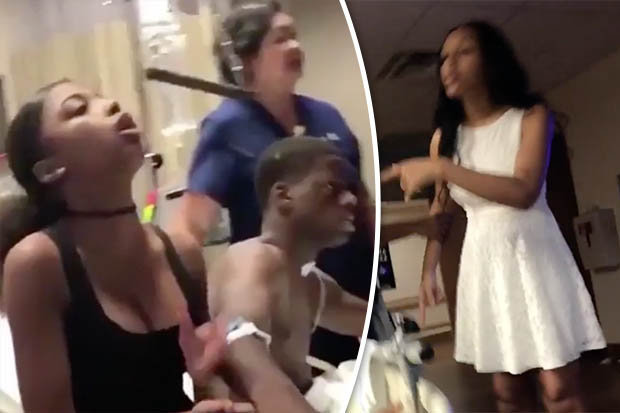ونشرت صحيفة "ديلي ستار" البريطانية فيديو لذلك الشاب وهو راقد على سرير بالمستشفى، فيما كانت صديقته تجلس بجانبه، لكن فجأة قدمت امرأة أخرى لزيارته، ودخلت في شجار مع صديقته، على مرأى من الممرضات والعاملين بالمستشفى، وتصاعدت حدة الشجار شيئا فشئ، حتى حاولت إحدى الحاضرين تهدئة الموقف وإخراج العشيقة المزعومة من الغرفة.