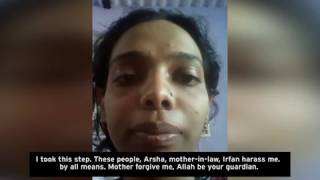 وفي رسالتها المأساوية الأخيرة توسلت إلى والدتها أن تسامحها، وقالت إنها تعرضت للتعذيب من قبل زوجها الذي يدعى عرفان ويعمل بائع، ودعت الله أن يرعى والدتها، وأن يغفر لها ما ستفعله، وقالت إن زوجها يضايقها ويعذبها بكافة الوسائل ويطلب منها استرداد المهر الذي دفعه.