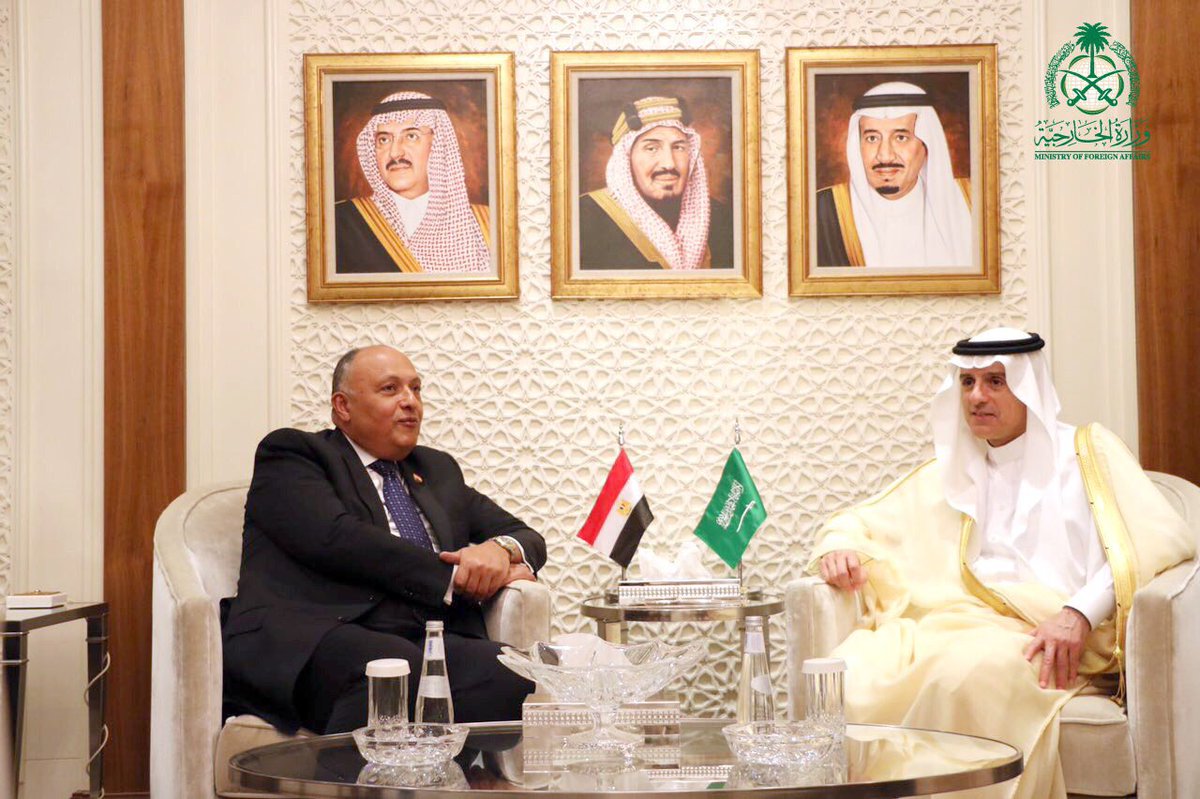 وذكر حساب "وزارة الخارجية" السعودية الرسمي على "تويتر"، أن "عادل الجبير التقى في مكتبه بالوزارة اليوم وزير الخارجية سامح شكري وتباحثا القضايا ذات الاهتمام المشترك".
