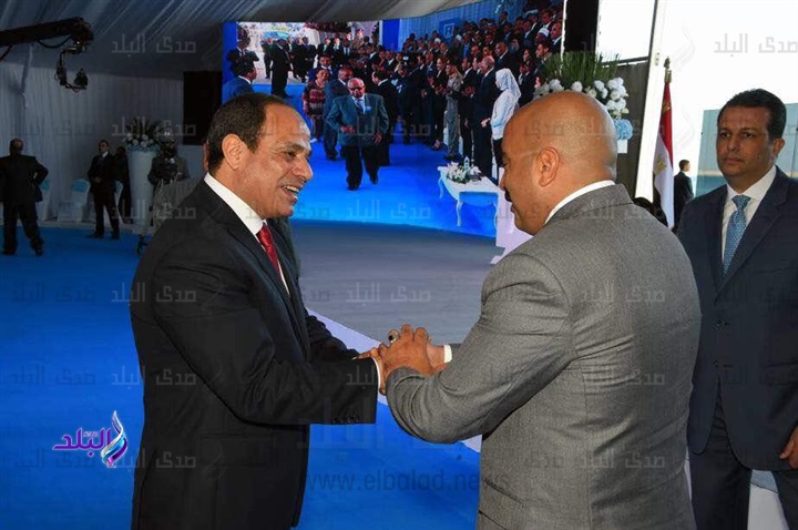 الرئيس السيسي يصافح عددا من أهالي أبطال القناة ..صور