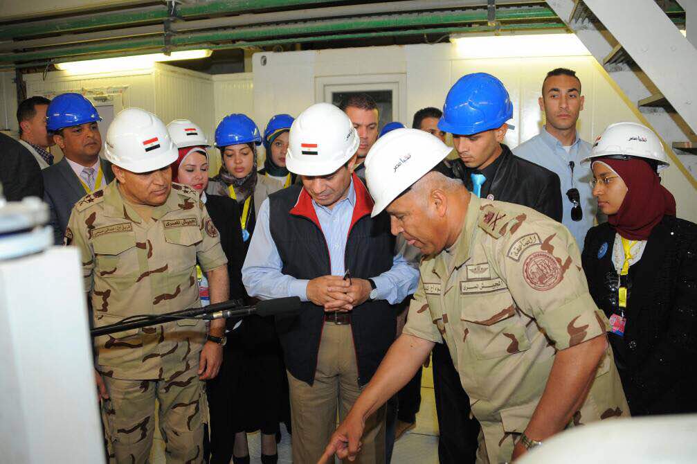 قام الرئيس عبد الفتاح السيسي صباح اليوم بتفقد سير العمل في مشروع تنفيذ أنفاق قناة السويس وبصحبته عدد من الشباب، حيث استمع إلى شرح من اللواء كامل الوزير رئيس الهيئة الهندسية للقوات المسلحة حول تطورات تنفيذ المشروع.