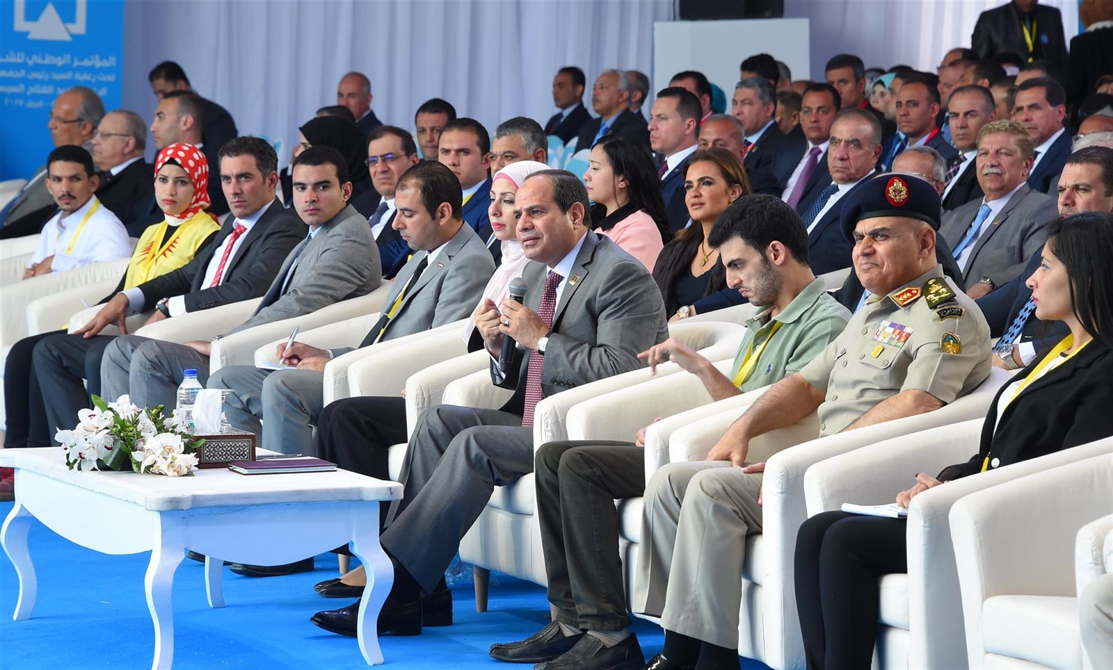 وقد تحدث خلالها عدد من المسئولين منهم رئيس مجلس الوزراء، ووزيري النقل، والإسكان، ورئيس هيئة قناة السويس، فضلًا عن عدد من الشباب، وعرض رئيس الوزراء أهم مؤشرات الأداء الاقتصادي والمالي، مؤكدًا أن قرارات الإصلاح الاقتصادي التي تم اتخاذها كانت ضرورية لوضع الاقتصاد على المسار السليم.