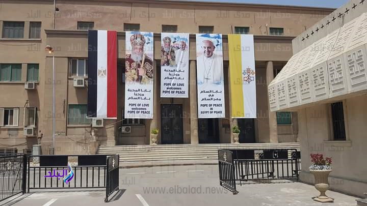 تزينت الكاتدرائية المرقسية بالعباسية لاستقبال البابا فرانسيس الأول، بابا الفاتيكان.