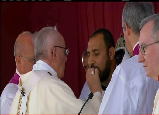 أدي البابا فرانسيس بابا الفاتيكان طقس التناول، حيث قام بإطعام المرافقين له، ومن ثم قاموا بإطعام عدد كبير من الحاضرين لقداس الصلاة، وذلك عقب الانتهاء من إلقاء العظة، بحضور أكثر من 25 ألف مواطن باستاد الدفاع الجوي.