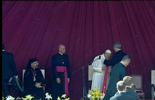 وكان الرئيس عبدالفتاح السيسي استقبل البابا فرنسيس، أمس الجمعة، في قصر الاتحادية، حيث أجريت مراسم استقبال رسمية له، بعد الوصول من مطار القاهرة، وأعقبها زيارة مشيخة الأزهر الشريف، حيث التقى بالإمام الأكبر د. أحمد الطيب شيخ الأزهر، كما ألقى كلمة بمؤتمر الأزهر العالمي للسلام، وأعقبها مؤتمر صحفي مشترك مع الرئيس عبدالفتاح السيسي في فندق الماسة بالقاهرة، بحضور رموز الدولة المصرية ووزراء الحكومة، وأعقبها زيارة للكنيسة البطرسية للقاء البابا تواضروس الثاني، ثم زيارة إلى الكنيسة البطرسية، التي استهدفها الإرهاب الغاشم بالعباسية.