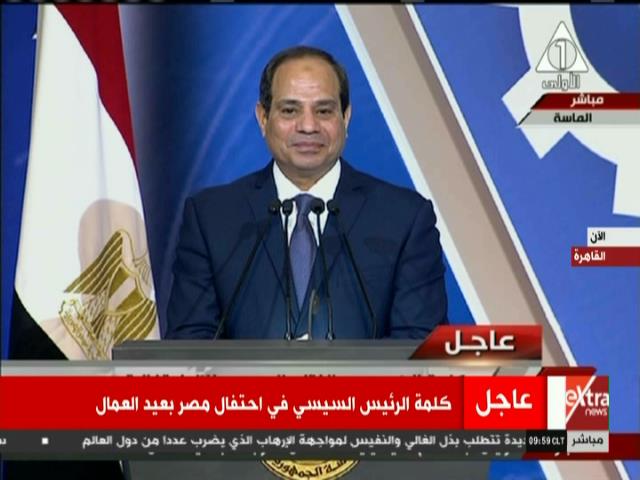 وشهد الرئيس عبد الفتاح السيسي اليوم الأحد، الاحتفالية التي ينظمها الاتحاد العام لنقابات عمال مصر بمناسبة عيد العمال.