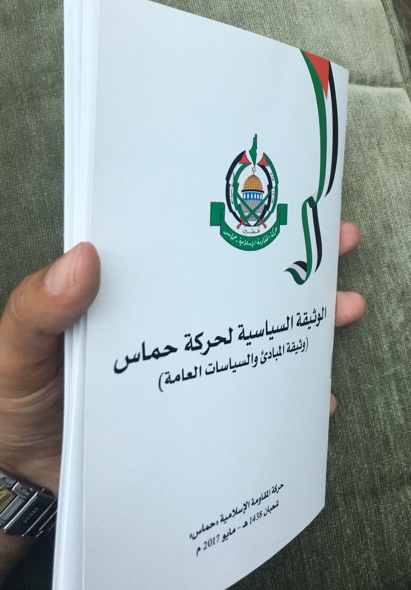 وبحسب مانشر عن الوثيقة، فإنها تتضمن الموافقة على إقامة دولة فلسطينية كاملة السيادة عاصمتها القدس ضمن حدود 67 وهي صيغة توافقية وطنية مشتركة، مع رفضها الاعتراف بإسرائيل، بجانب التبرؤ من الانتماء لجماعة "الإخوان".
