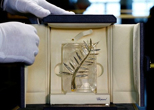 وأضاف الموقع أن المهرجان يتعاون مع دار المجوهرات السويسرى شوبارد ولأول مرة تم تصميم جديد لجائزة السعفة الذهبية والتى تقدر بـ 118 جراما من الذهب وهى مرصعة بـ 167 قطعة من الماس واحتاجت الجائزة 40 ساعة من العمل ووصلت تكلفتها إلى 20 ألف يورو.