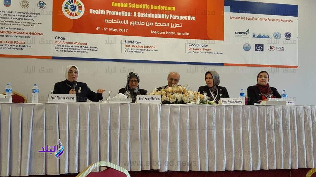 شاركت دكتورة مايسة شوقي نائب وزير الصحة والسكان، اليوم في المؤتمر العلمي السنوي لقسم الصحة العامة وطب المجتمع والبيئة وطب الصناعات بكلية الطب جامعة قناة السويس بالإسماعيلية، تحت عنوان "تعزيز الصحة من منظور الاستدامة"، وذلك بحضور نخبة من علماء الطب في مصر.