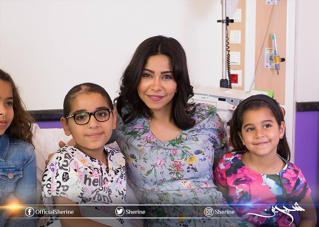 حرصت الفنانة شيرين عبد الوهاب على زيارة الطفل شريف ياسر المريض بالسرطان فى مستشفى 57357 برفقة ابنتيها.