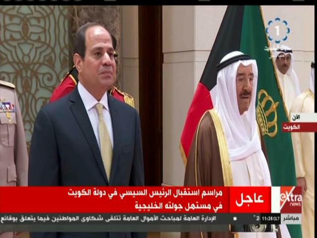 وشهدت مراسم الاستقبال عزف السلام الجمهوري لمصر والكويت، واستعرض الرئيسان السيسي وصباح الأحمد حرس الشرف الجمهوري.