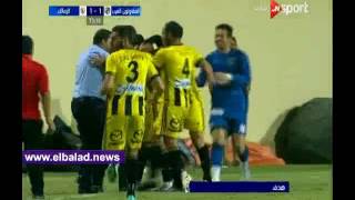 وأهدر مايوكا فرصة حقيقية لتهديد مرمى الذئاب واحتسب حكم اللقاء ضربة جزاء لصالح ستانلي فى الدقيقة 26 وسط اعتراضات من جانب لاعبى المقاولون ومحمد عوده المدير الفنى للذئاب ليسددها احمد رفعت وتسكن الشباك لتعلن الهدف الأول للمارد الأبيض بالدقيقة 28.