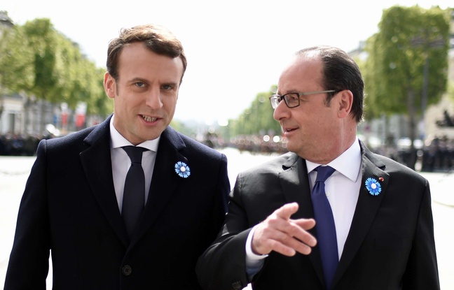 ووفقا لتقرير نشرته صحيفة «لو أكسبريس» الفرنسية عن تغطية فعالية الاحتفال بذكرى انتصار 1945، ظهر الرئيس المنتخب ماكرون علنيا جنبا إلى جنب مع الرئيس الحالي أولاند في الشانزليزيه، في زيارة لقوس النصر في مرافقة فرقة من فرسان الحرس الجمهوري.