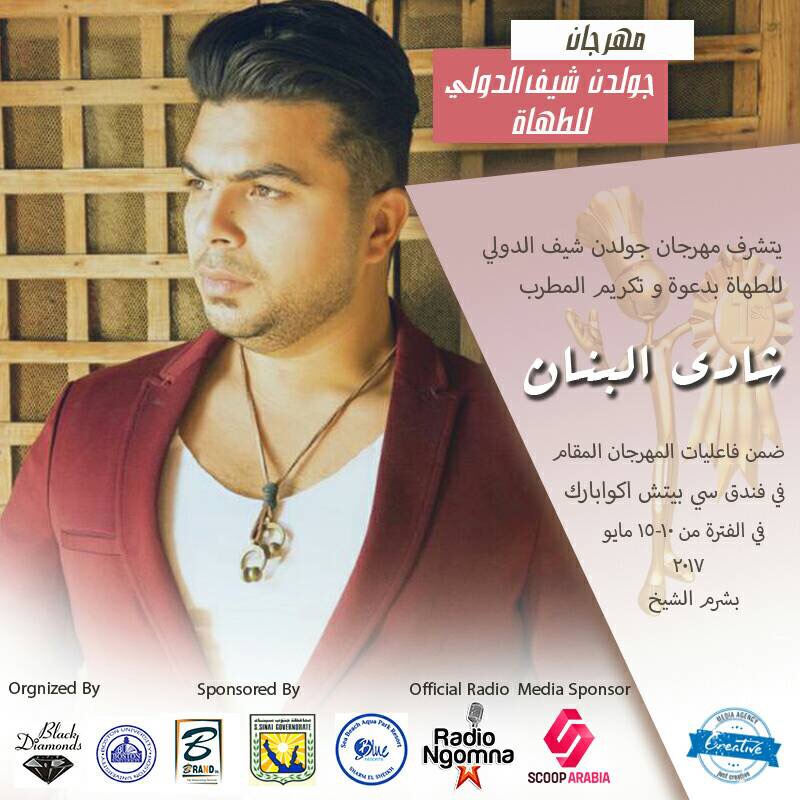 يحيي الفنان الشاب "شادي البنان" حفلي افتتاح وختام مهرجان جولدن شيف الدولي للطهاة بشرم الشيخ، والمقام في الفترة من 10 إلي 15 مايو المقبل بفندق سي بيتش أكوا بارك، وسيتم تكريم البنان خلال الحفل الختامي للمهرجان.