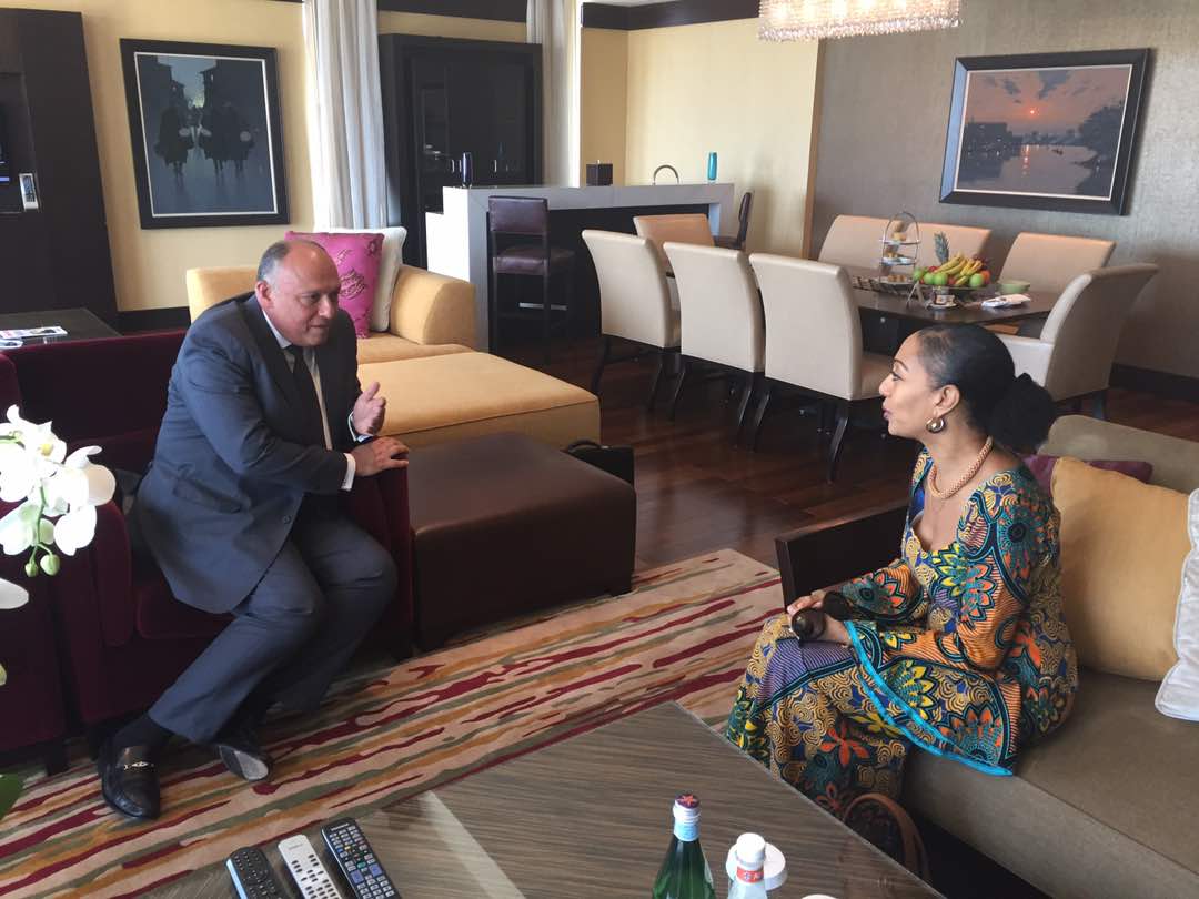 أكد المستشار أحمد أبو زيد المتحدث الرسمي باسم وزارة الخارجية أن "سامية نكروما" كريمة الزعيم الغاني الراحل كوامي نكروما حرصت على استقبال وزير الخارجية سامح شكري بمقر إقامته في غانا في إطار العلاقات التاريخية التي ربطت بين مصر وغانا على مستوى الشعبين والقيادتين.