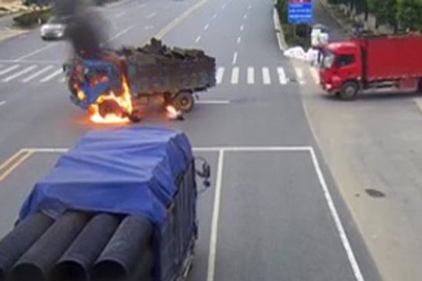 وبحسب الصحيفة البريطانية وقعت الحادثة فى مدينة "نانتشانج" عاصمة مقاطعة "جيانجشي" فى شرق الصين، حيث التثطت كاميرات المراقبة الحادثة، عندما اصطدم الدراج بصندوق وقود الشاحنة فانفجر على لافور فى جسده.
