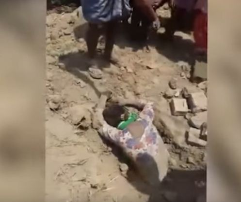 وتظهر لقطات الفيديو قيام أشخاص بإنقاذ الفتاة، وانتشالها من "قبرها" في قرية جوفيندبور في بيهار، شرقي الهند.