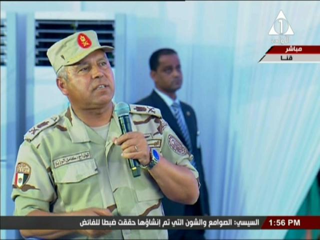 استمع الرئيس عبد الفتاح السيسي إلى شرح من اللواء أركان حرب كامل الوزير، رئيس الهيئة الهندسية للقوات المسلحة، عن مشروعات الهيئة.
