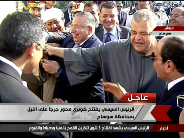 طلب الرئيس عبد الفتاح السيسي أن يشاركه أهالي محافظة سوهاج في رفع الستار إيذانا بافتتاح كوبري محور جرجا بالمحافظة، حيث رفض أن يرفع الستار بنفسه، وأصر علي أن يفعل أهالي المحافظة ذلك.