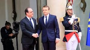 اجتماع بين الرئيسين أولاند وماكرون في مكتب رئيس الجمهورية بقصر الاليزية اليوم سبق مراسم التنصيب التى حضرتها بقوة أسرة ماكرون ، ومحادثات ثنائية خاصة مغلقة بشأن أسرار الدولة والشفرة النووية وملفات العالم الساخنة وتعامل الدولة الفرنسية معها ، خرج بعدها الرئيس أولاند الذي لقب نفسه " بالرئيس العادي" من قصر الإليزية مودعا بعد 5 سنوات قضاها بداخله مقررا عدم خوض الانتخابات الرئاسية مرة أخرى.