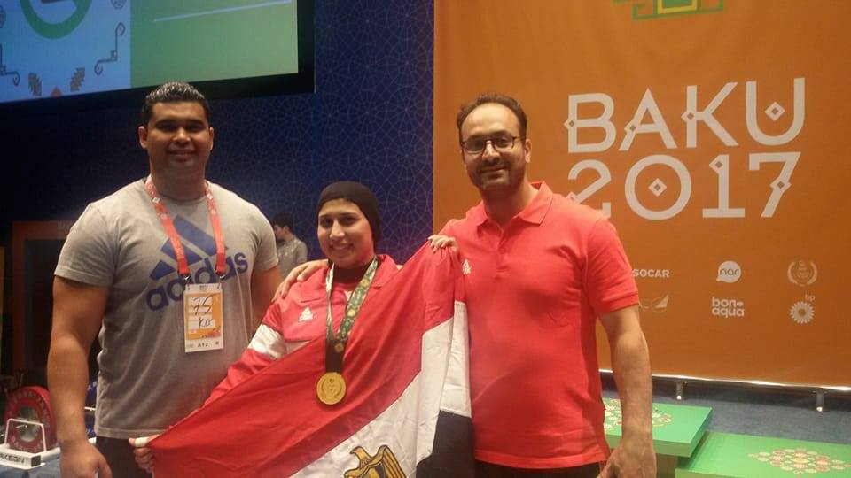 وزير الرياضة يهنئ "راويه" بذهبية رفع الأثقال في دورة التضامن الاسلامي..صور