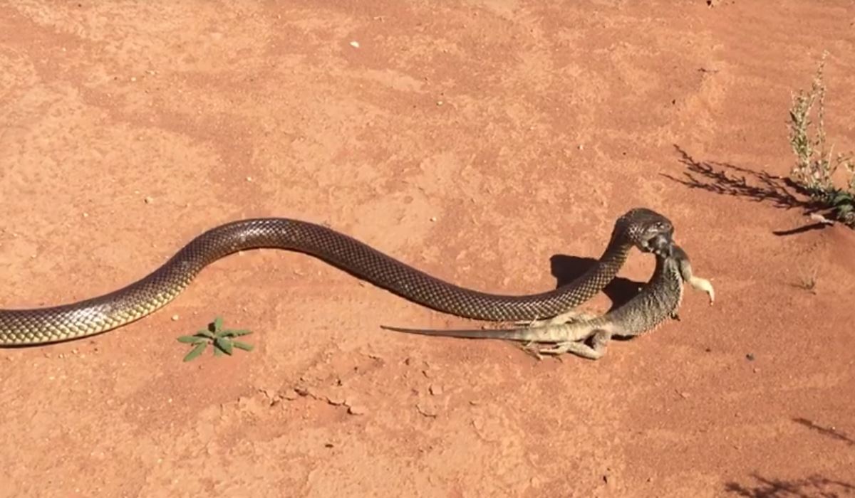 التقط الفيديو أحد علماء البرية بينما كان يقوم ببعض الأبحاث على الثعابين السامة فى هذه المنطقة، ليجد ثعبانًا طويلًا يسير متعرجا وفمه ممتلئ بفريسته.