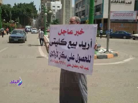 تداول رواد مواقع التواصل الاجتماعي بمحافظة الشرقية اليوم، صورا لواقعة وقوف مواطن أمام ديوان عام المحافظة رافعا لافتة مكتوب عليها "اريد بيع كليتي لشراء شقة لأولادي".
