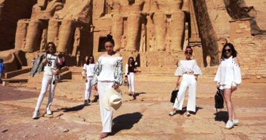 قامت مجموعة من عارضات الأزياء بدولة الأرجنتين بإلتقاط صور تذكارية ودعائية أمام معبدى رمسيس الثانى بمدينة أبو سمبل السياحية جنوب أسوان.