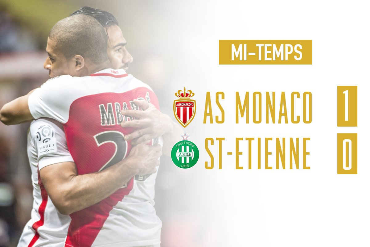 انتهى الشوط الأول من مباراة موناكو وضيفه سانت إيتيان المقامه حاليًا على ملعب لويس الثانى والمؤجلة من الأسبوع الـ31 من بطولة الدورى الفرنسى الممتاز لكرة القدم , بتقدم اصحاب الأرض بهدف مقابل لا شئ.