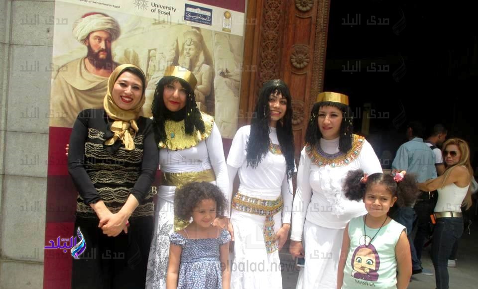 بالصور..أمناء المتحف المصري يستقبلون الزوار بالزى الفرعونى والورود