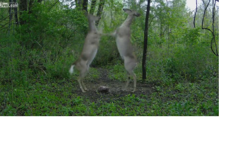 تداول رواد موقع التواصل الاجتماعي، فيديو طريف يُظهر غزالين يتعاركان بشكل غريب بإحدى الغابات في كندا.