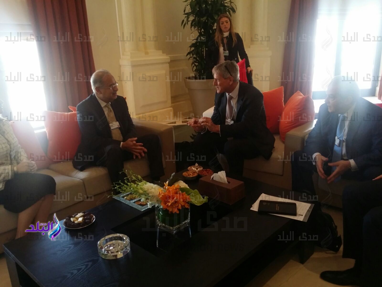 على هامش حضوره فعاليات المنتدى اﻻقتصادى العالمى لمنطقة الشرق الأوسط وشمال أفريقيا، التقى المهندس شريف إسماعيل، رئيس مجلس الوزراء، اليوم، السبت، المدير التنفيذى لشركة دانة غاز، وذلك بحضور وزيرة اﻻستثمار والتعاون الدولى، وسفير جمهورية مصر العربية لدى المملكة الأردنية الهاشمية، وعدد من مسئولى الشركة.